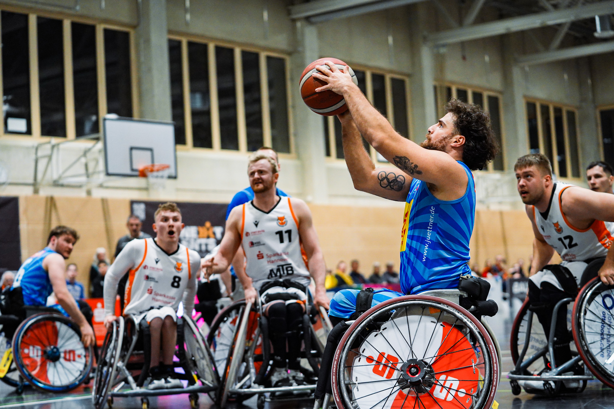 Der schwedische Rückkehrer markierte die ersten Punkte der Begegnung, die ausgeglichen begann (9:9, 5.Minute). Auffälligster Aktivposten bei United war Tom McHugh, der immer wieder seine Größenvorteile ausnutzen konnte. Bis zum Viertelende setzten sich die Gäste mit 20:13 etwas ab.