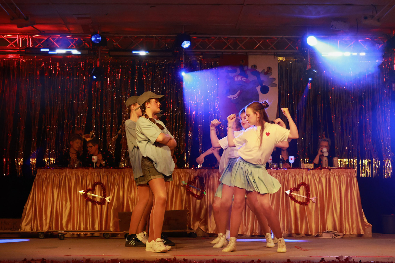 Da der Valentinstag auf das Karnevalswochenende fiel, haben die „Elxleb’er Elche“ das Thema der Liebe in all ihren Facetten inszeniert – von Freundschaft über erste vorsichtige Annäherungsversuche, späterhin aufregende Datings zur Wahl der oder des Richtigen, über Schmetterlinge im Bauch bis hin zu käuflicher Liebe.