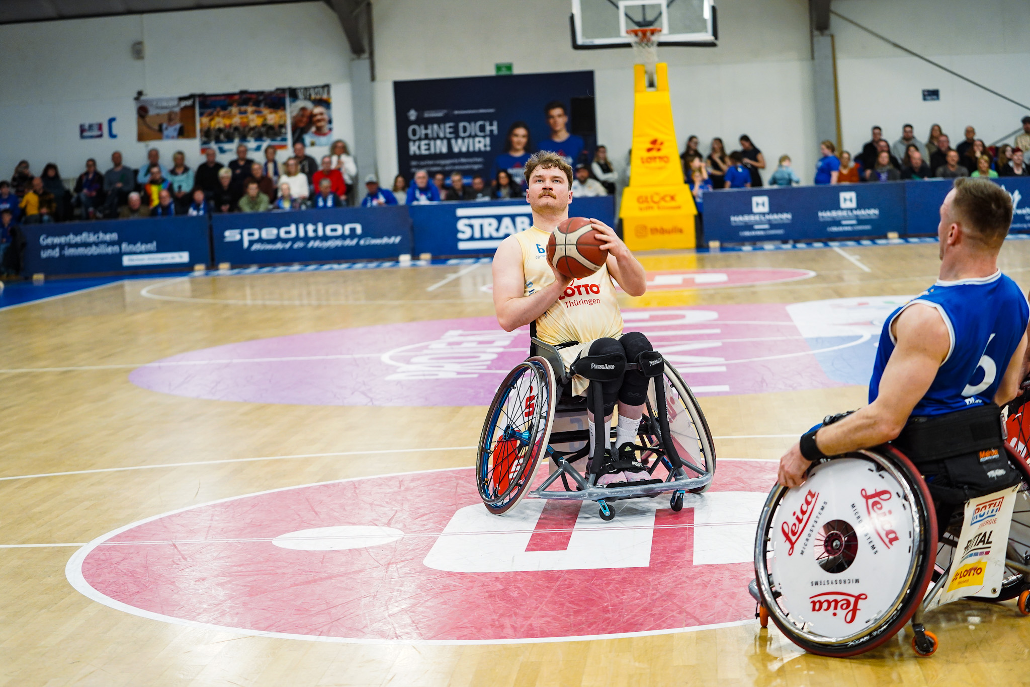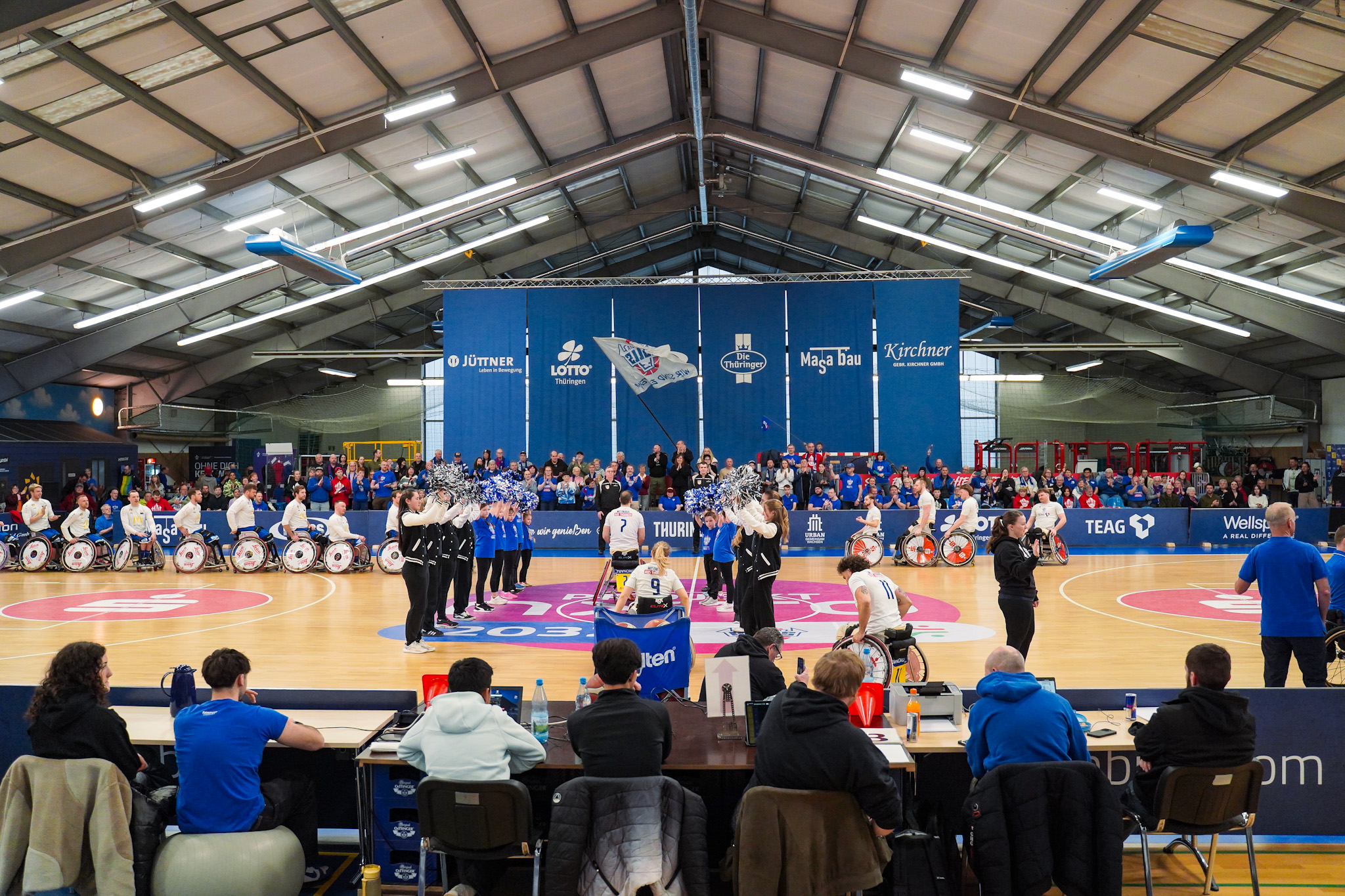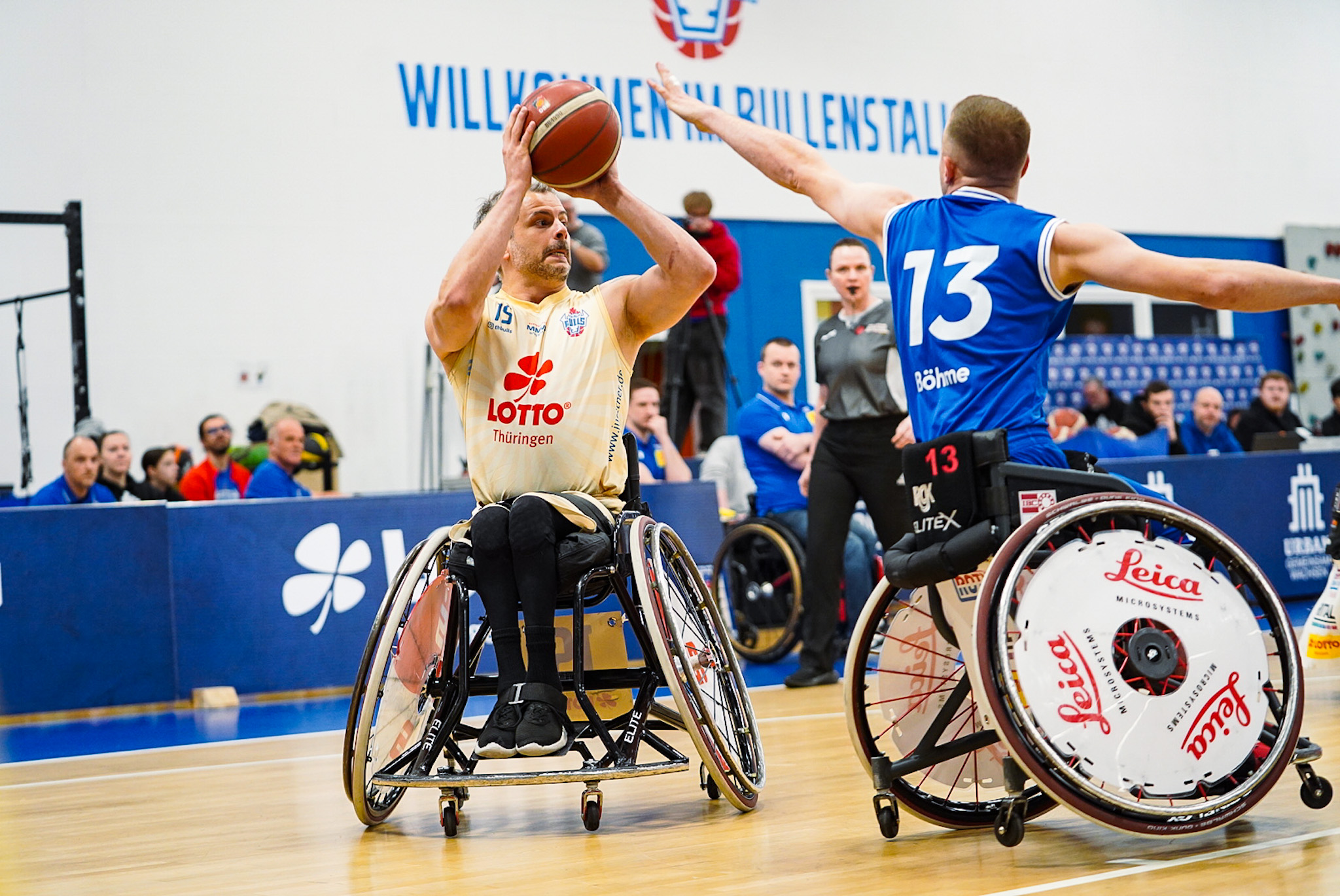 Die Thuringia Bulls bezwingen den RSV Lahn-Dill in einem spannenden Topspiel mit 75:70 (12:19, 17:16, 24:12, 22:23). Es war wieder soweit: Der „El Clásico“ des deutschen Rollstuhlbasketballs zwischen dem RSV Lahn-Dill und den RSB Thuringia Bulls elektrisierte einmal mehr die gesamte Rollstuhlbasketballfamilie. Die Vorzeichen vor der Partie hätten dabei kaum unterschiedlicher sein können. Während die Hessen nach einer bislang herausfordernden Saison mit einer Portion Extra-Motivation in den ausverkauften Bullenstall reisten, gingen die TH Bulls weiterhin ungeschlagen und viel Selbstbewusstsein in das Spitzenspiel. Verzichten mussten die Thüringer jedoch auf ihren Topscorer Alex Halouski, der aufgrund einer Handverletzung nicht zur Verfügung stand.