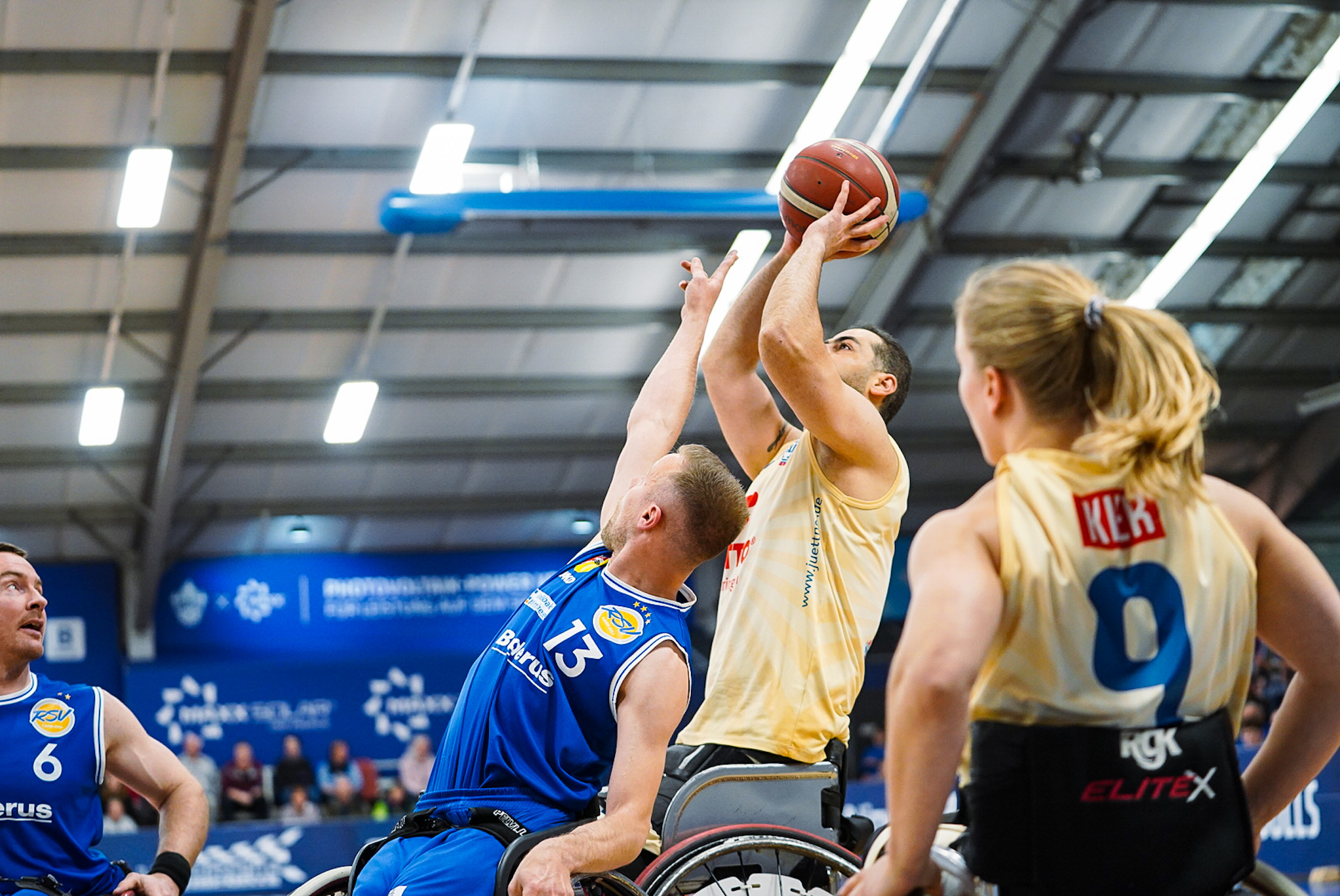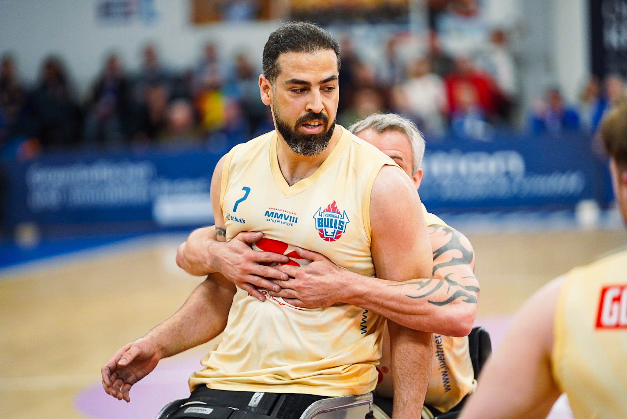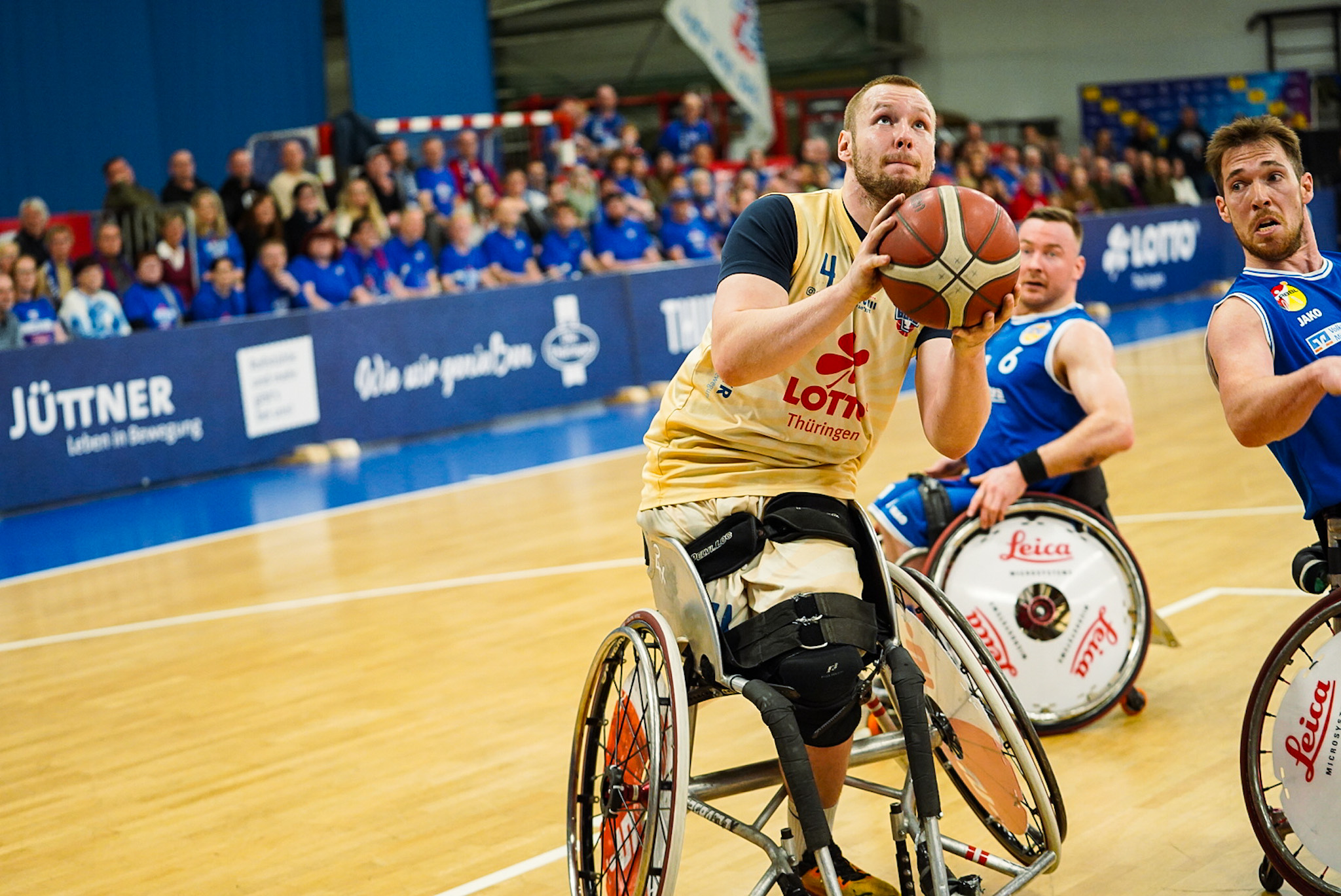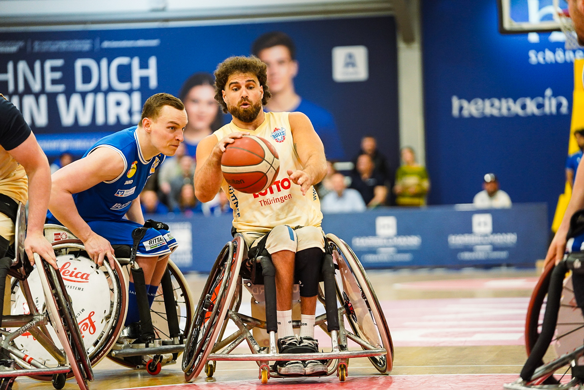 Die Thuringia Bulls bezwingen den RSV Lahn-Dill in einem spannenden Topspiel mit 75:70 (12:19, 17:16, 24:12, 22:23). Es war wieder soweit: Der „El Clásico“ des deutschen Rollstuhlbasketballs zwischen dem RSV Lahn-Dill und den RSB Thuringia Bulls elektrisierte einmal mehr die gesamte Rollstuhlbasketballfamilie. Die Vorzeichen vor der Partie hätten dabei kaum unterschiedlicher sein können. Während die Hessen nach einer bislang herausfordernden Saison mit einer Portion Extra-Motivation in den ausverkauften Bullenstall reisten, gingen die TH Bulls weiterhin ungeschlagen und viel Selbstbewusstsein in das Spitzenspiel. Verzichten mussten die Thüringer jedoch auf ihren Topscorer Alex Halouski, der aufgrund einer Handverletzung nicht zur Verfügung stand.