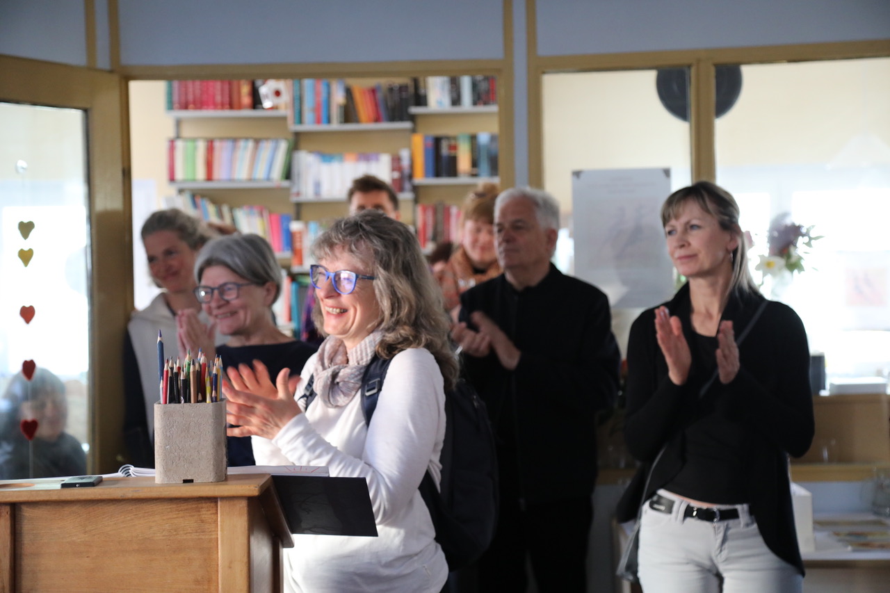 Über eine jahrzehntelange Erfahrung in Bildhauerei und Malerei verfügt die Künstlerin. Studienaufenthalte in Erfurt, Berlin, Italien, Dresden, China und Paris – Ausstellungen ebenfalls in Paris, zudem in Chicago, Hamburg, Berlin, Bonn und vielen anderen Städten einschließlich in der Erfurter Heimat prägen ihr Schaffen. „Die Reisen haben mich sehr inspiriert. Energie, Dynamik und Tanz und der Drang, kreativ zu sein, begleiten mich schon mein ganzes Leben“, führt sie aus anlässlich der Ausstellungseröffnung vor einem interessierten, aufmerksamen Publikum.