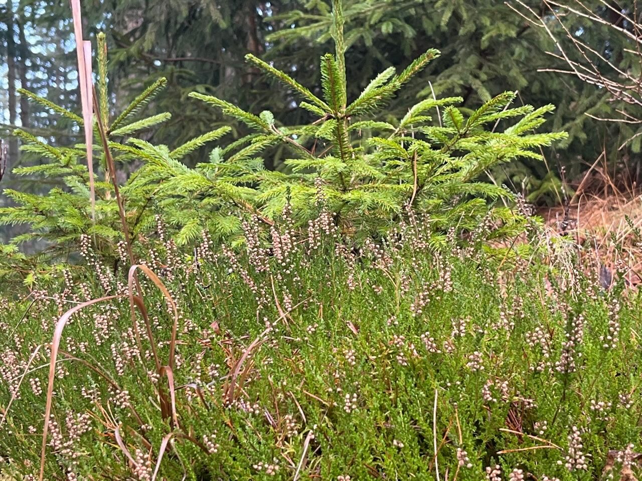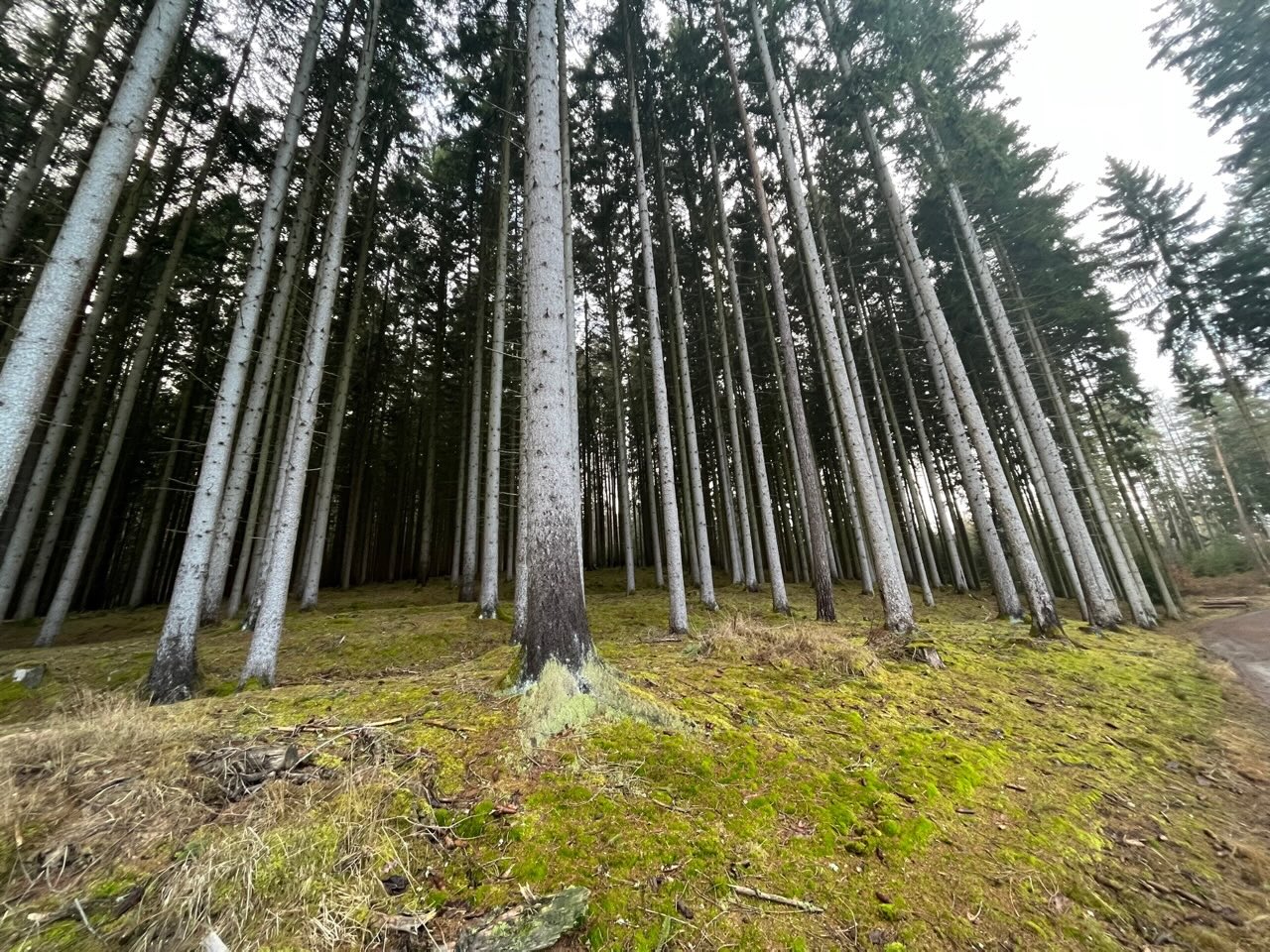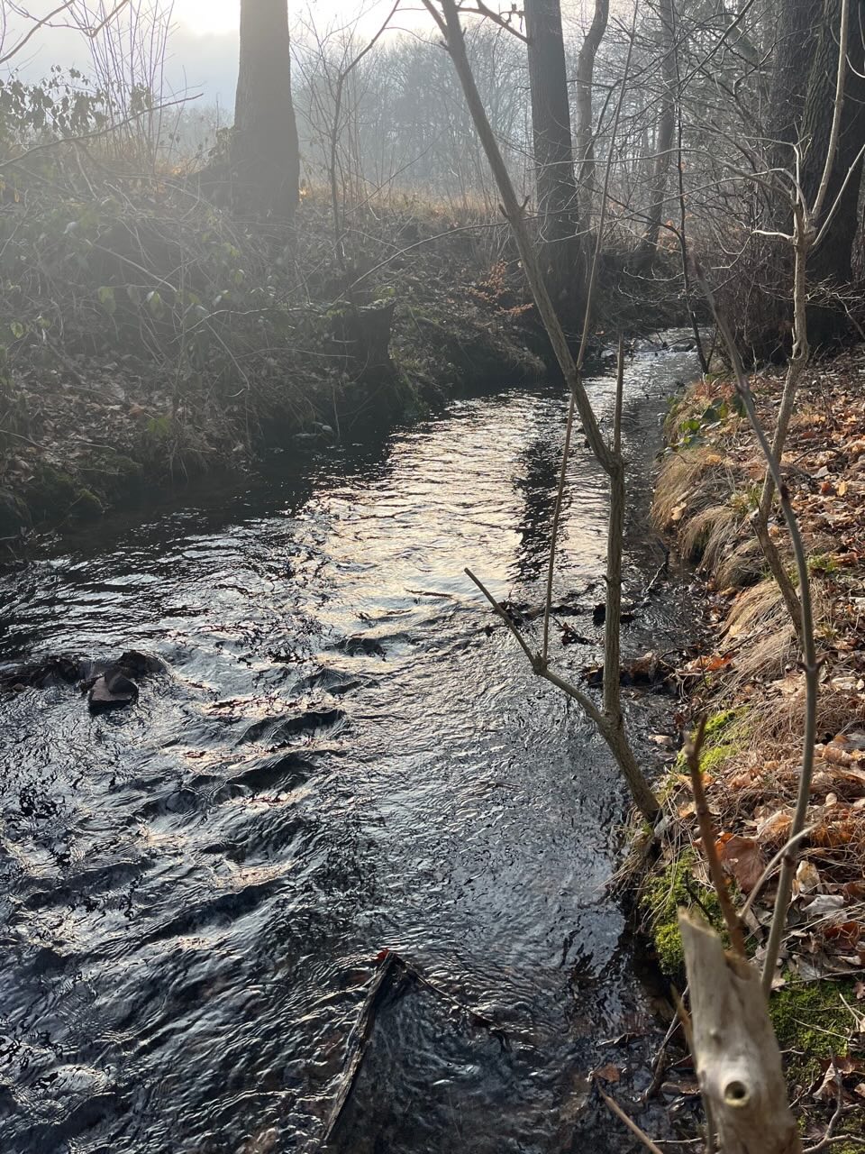 Die Wintersonne kämpfte sich erst am Nachmittag durch Nebel und Dunst und tauchte das Waldgebiet nahe Reinhardsbrunn in freundliches Licht. Der Schnee ist getaut, noch sind sie Teiche, die eine lange Fischzuchttradition haben mit einer Eisschicht überzogen.