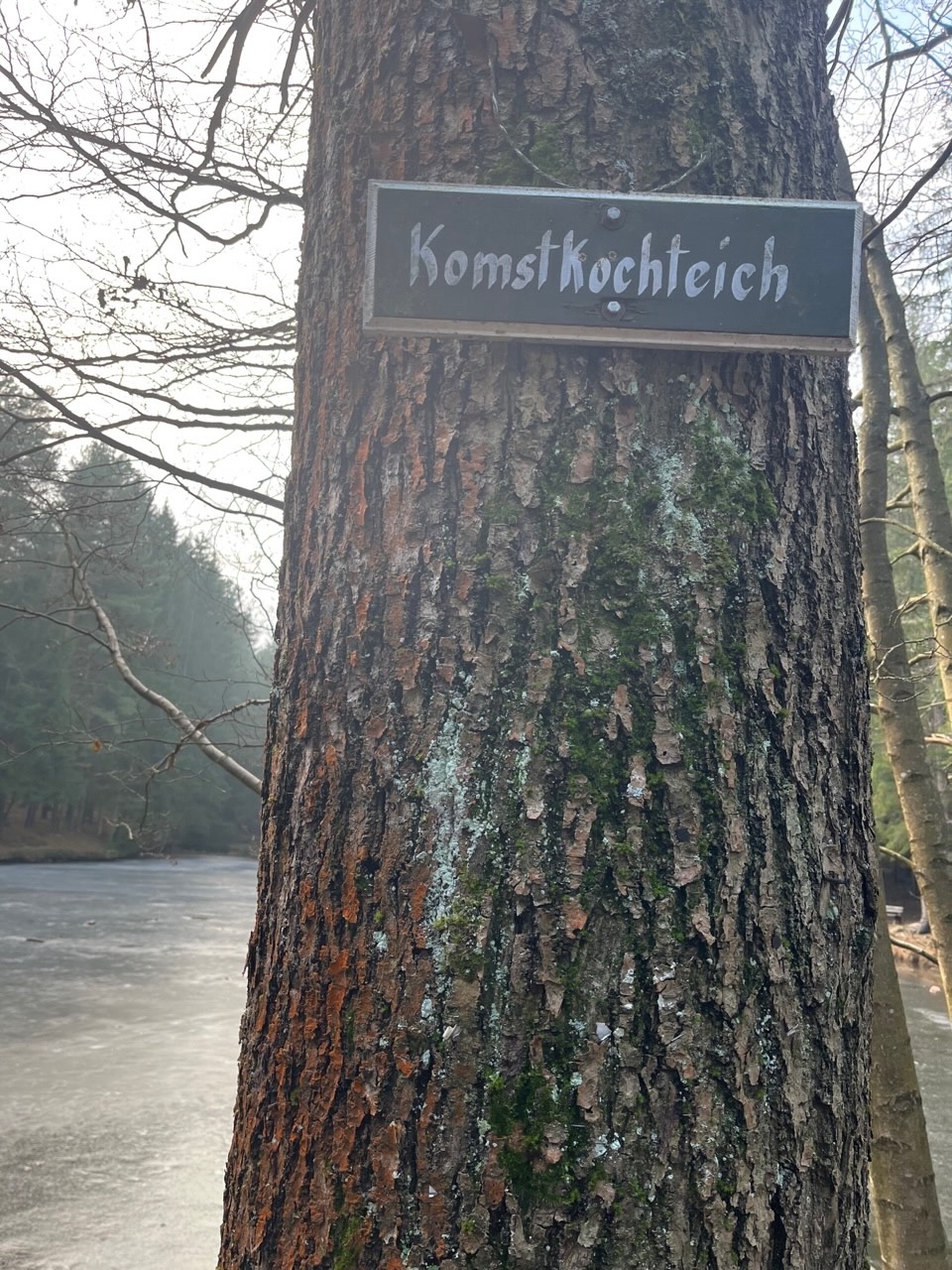 Der Komtskochteich – im Wald gelegen – gehörte der Legende zufolge einst armen Holzbauern, ein Geschenk des Landgrafen Ludwig des Eisernen von Thüringen (1128 - 1178), der sich im Walde verirrt habe und von den Bauern zu einem selbstgekochten Mittagessen – Komst – eingeladen worden sein soll.*