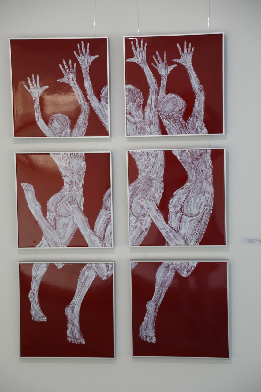 Eine Besonderheit der ausgestellten Werke ist die gelungene Verbindung von Bild und Skulptur. Kleine Meisterwerke aus emaillierten Kupfer fügen sich in die Bilder ein, setzen besondere Akzente.