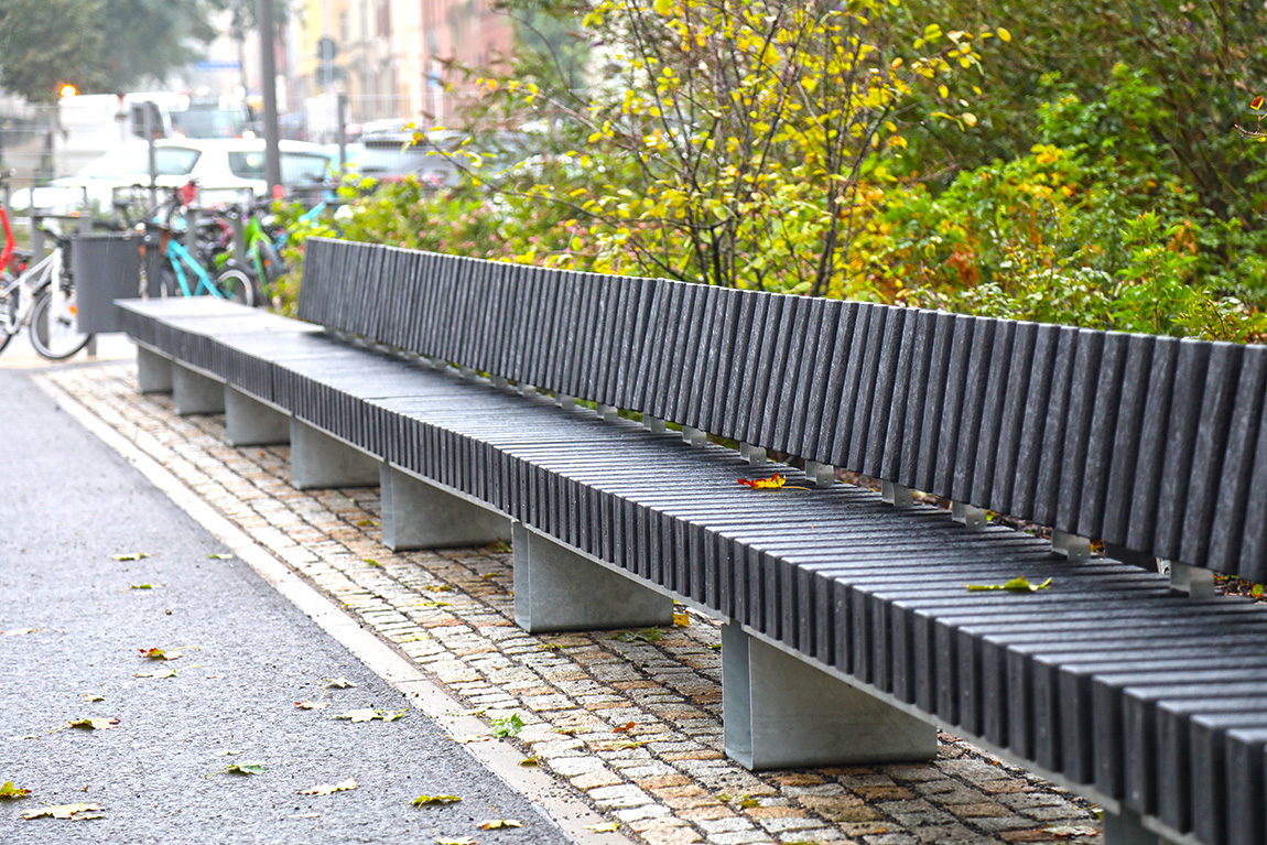 Hinter dem Nebengebäude wurde ein grünes Klassenzimmer mit Sitzflächen und einer Wandfläche, bspw. für Projektionen mit einem Beamer, eingerichtet.