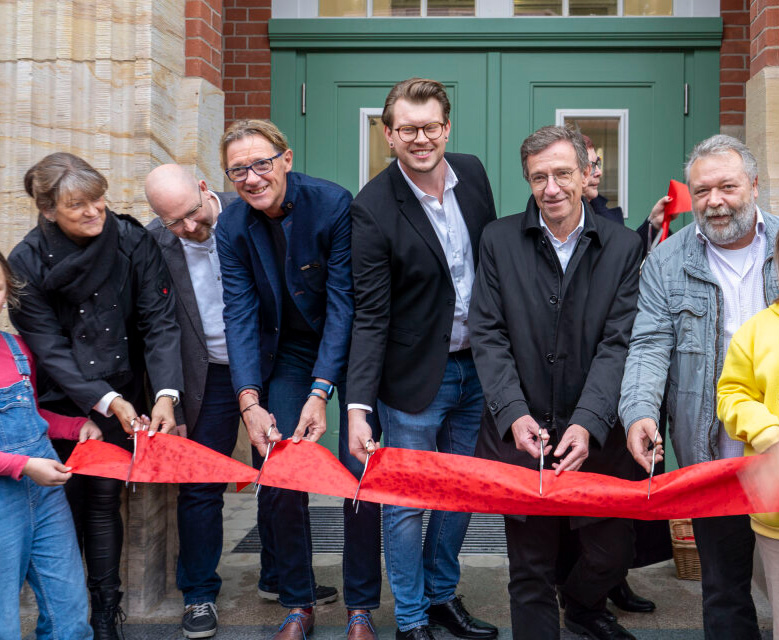 Die Eröffnung vollzogen unter anderem der Bildungs-Staatssekretär Winfried Speitkamp und Dr. Werner Ungewiß, der Leiter des Amtes für Bildung, mit dem symbolischen Banddurchschneiden.
